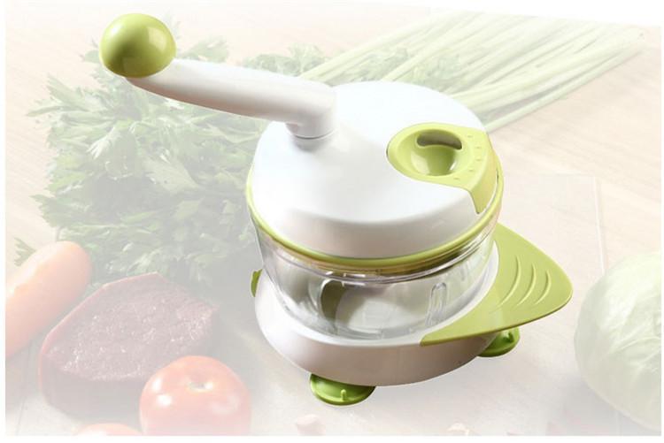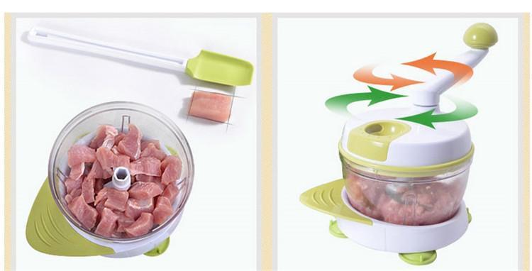 Le processeur des aliments manuel rotatif 360 vous permet de hacher, couper en dés, émincer et mélanger des viandes, des légumes, des herbes, des sauces et plus encore! Vous n'avez pas besoin d'un robot culinaire volumineux et lourd avec une consommation d'électricité élevée. Ce robot culinaire est actionné manuellement avec une poignée rotative 360. Il est également livré avec des pieds ventouses antidérapants pour le garder en place pendant que vous le tournez.