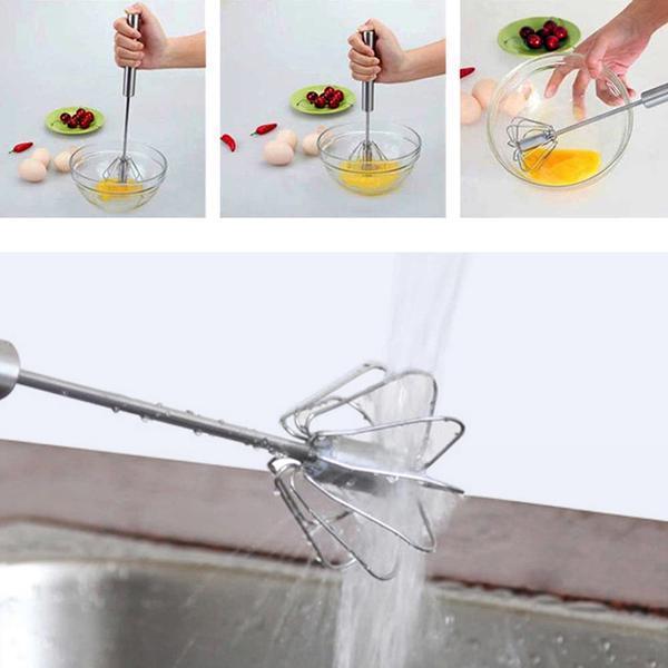 Gagnez un temps précieux et de l'énergie en fouettant des ingrédients pour des friandises ou des plats savoureux en utilisant un fouet auto-rotatif. Ce fouet peut mélanger, mousser et fouetter en quelques secondes avec un minimum d'effort et faire le travail beaucoup plus rapidement que le fouet ordinaire sans utiliser l'électricité ou la batterie. Plus de rotation vigoureuse du poignet nécessaire pour mélanger. Il suffit d'appuyer sur la poignée et elle fera tout le fouet pour vous.