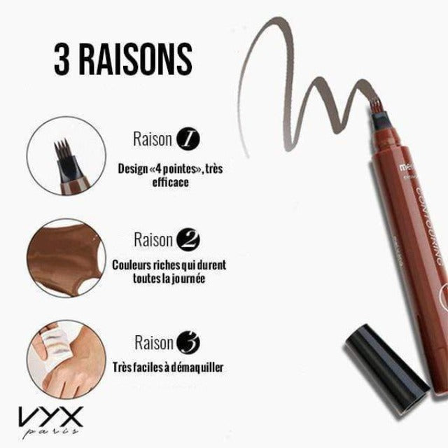 - Une formule waterproof qui procure un effet sourcils tatoués, colore intensément, sèche vite et ne colle pas.