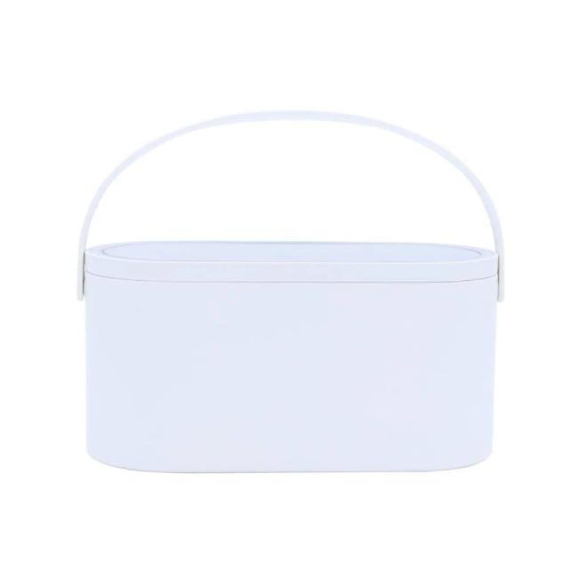 ...vous permet de la placer dans tout recoin de la salle de bain, dans la coiffeuse, dans un tiroir, ou même dans votre sac à main pour avoir toujours à portée de main tout ce dont vous avez besoin sans devoir vous soucier de savoir où vous avez laissé vos affaires.