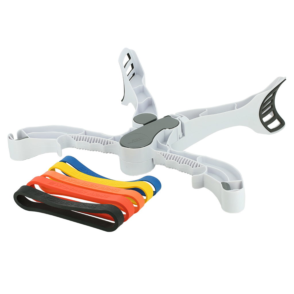 ARBRA™ est un petit appareil léger et très simple à utiliser, ouvrez-le et insérez l’une des 5 bandes de résistance dans les fentes prévues à cet effet. Munissez-vous des poignées et placez les repose-bras sur vos avant-bras et vous pouvez commencer vos exercices. Une fois l’entrainement terminé, repliez ARBRA™ et rangez-le dans sa pochette