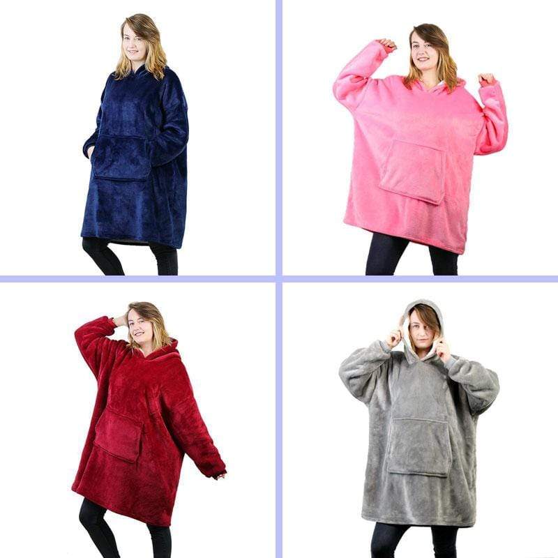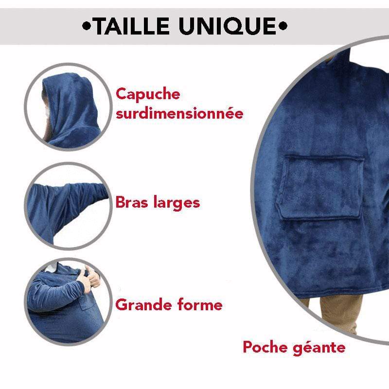 Il est étonnamment confortable et combine la chaleur d'une couverture avec le confort de votre sweat à capuche préféré. Il est fait de laine extra-douce et son intérieur est fait de peluche Sherpa. Doté d'une capuche surdimensionnée pour garder votre tête au chaud et au confort, ainsi que d'une grande poche large pour garder vos biens où que vous soyez. Il est même réversible et portable !!