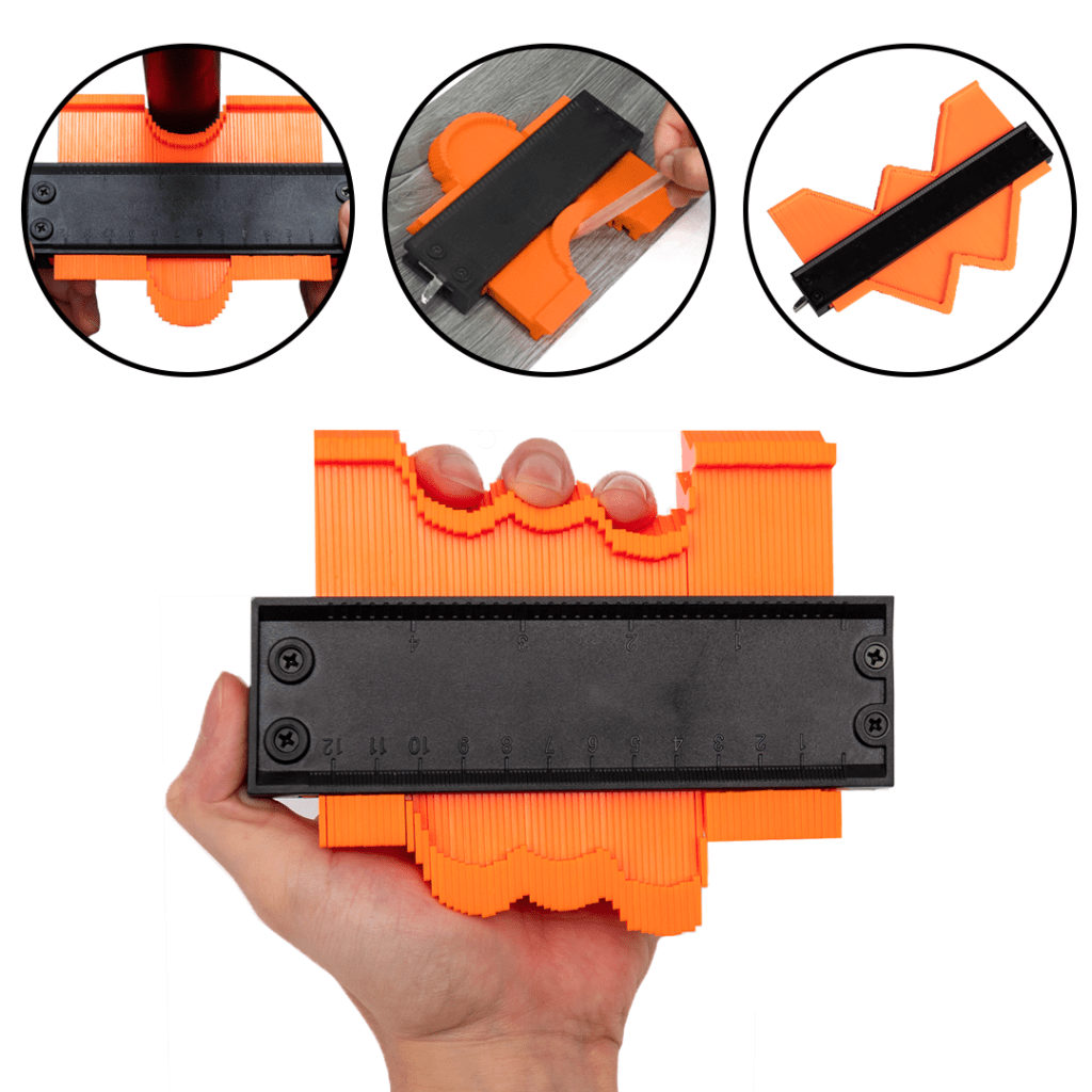 Quand vous posez du carrelage ou du parquet, procéder à certaines découpes n'est jamais simple : les tuyaux, cadres de porte et autres éléments qui font saillie au sol sont toujours des casse-têtes, car ils ne sont pas pratiques à mesurer. Avec ce copieur de forme, fini les galères ! L'outil se comporte comme un moule qui prend l'empreinte fidèle du contour et vous permet de reproduire directement le tracé de la zone à découper sur le support final.
