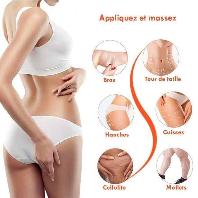 Ce brûleur de graisse combat efficacement les graisses indésirables sur l’abdomen, les bras, les jambes, les hanches et les fesses, le dos, le ventre , élimine la cellulite et l’effet peau d’orange et brûle les cellules graisseuses incrustées.