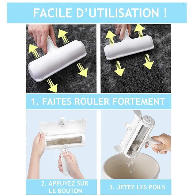 ROLLET™ permet un brossage efficace des poils d'animaux de compagnie sur vos banquettes, moquettes et vêtements.
