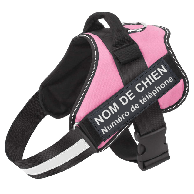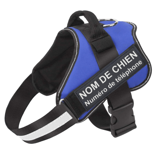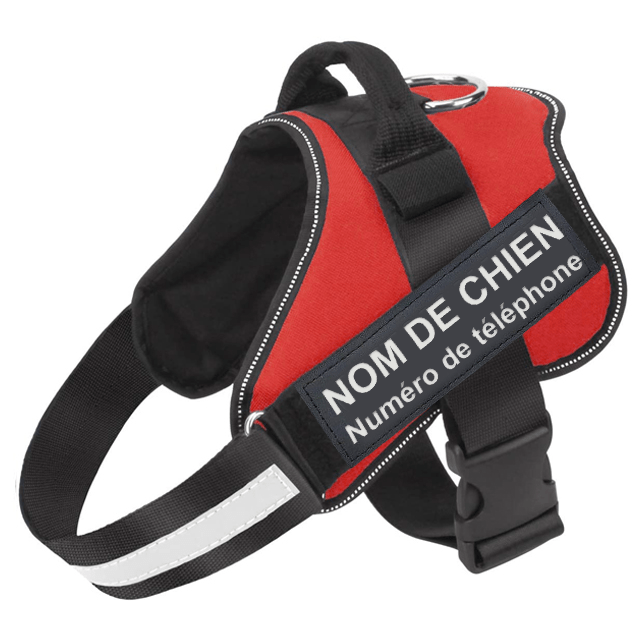 Le harnais dispose de deux bandes velcro sur chaque côté qu’il est possible de modifier ! Pour personnaliser votre harnais, ajoutez le texte de votre choix (nom de votre chien - votre numéro de téléphone...) dans le champ "Texte du logo" prévu à cet effet. Cela vous permet de toujours être en mesure de retrouver votre compagnon en cas de perte. Nous savons à quel point il est important pour vous.