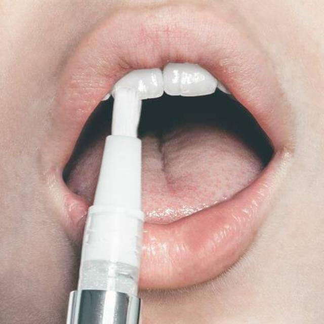2) Twistez le tube du stylo et appliquez une fine couche sur vos dents. A noter qu'il faut laissez votre bouche ouverte durant cette étape.