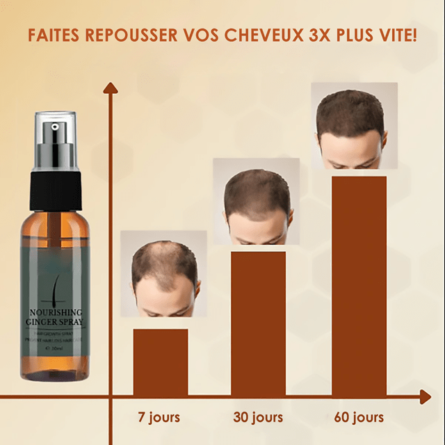 N’attendez plus et réagissez avec le spray capillaire au gingembre, qui contribue efficacement à la repousse des cheveux. Sa formule exclusive agit en profondeur sur le cuir chevelu, directement à la racine des cheveux. Avec ce traitement repousse cheveux efficace, la croissance du cheveu sont réactivées. Les cheveux dévitalisés sont alors plus forts et plus vigoureux.