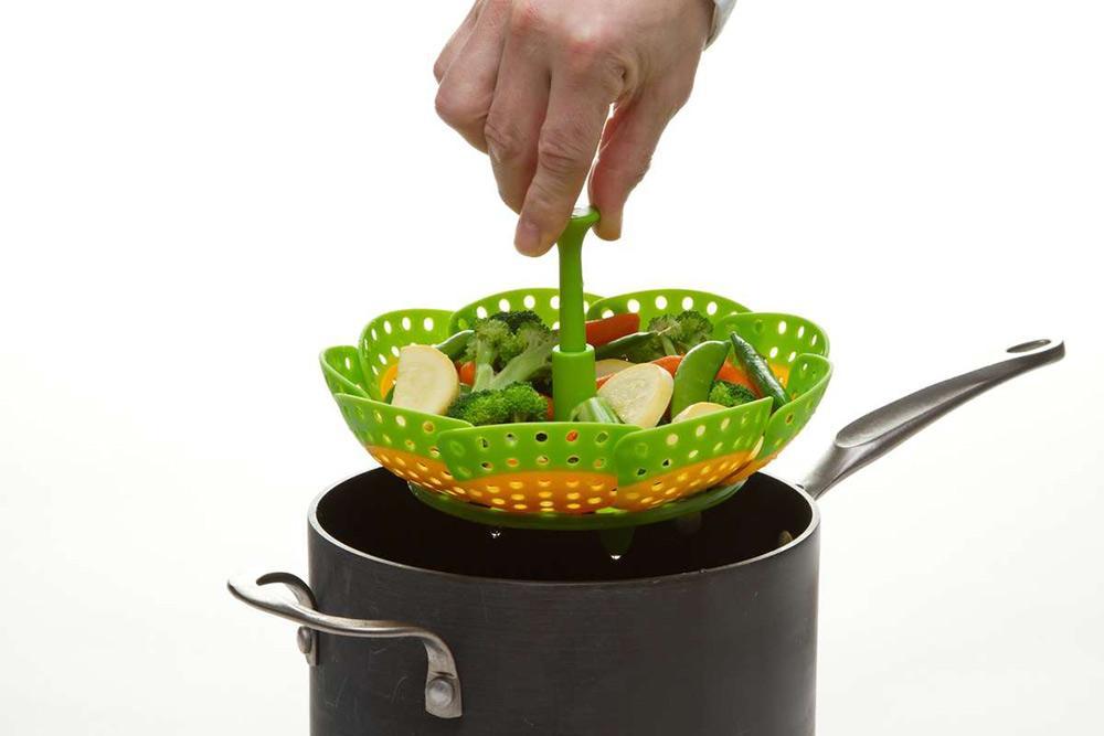 La conception de panier à vapeur classique est prise à de nouveaux niveaux de praticité et de commodité avec cette version colorée et contemporaine. Côtés auto-réglables pour s'adapter à la plupart des casseroles; matériau anti-rayures adapté à une utilisation avec des casseroles en acier et des ustensiles de cuisson antiadhésifs. Pièces en polypropylène résistant à la chaleur jusqu'à 240ºC / 480ºF.